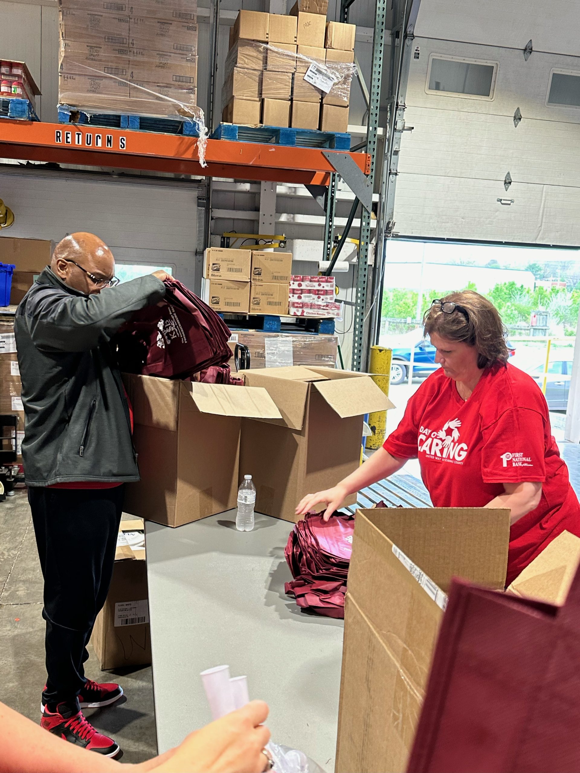 Four leadership team members went to the Tuff Bags warehouse and packed over 1,000 swag bags.